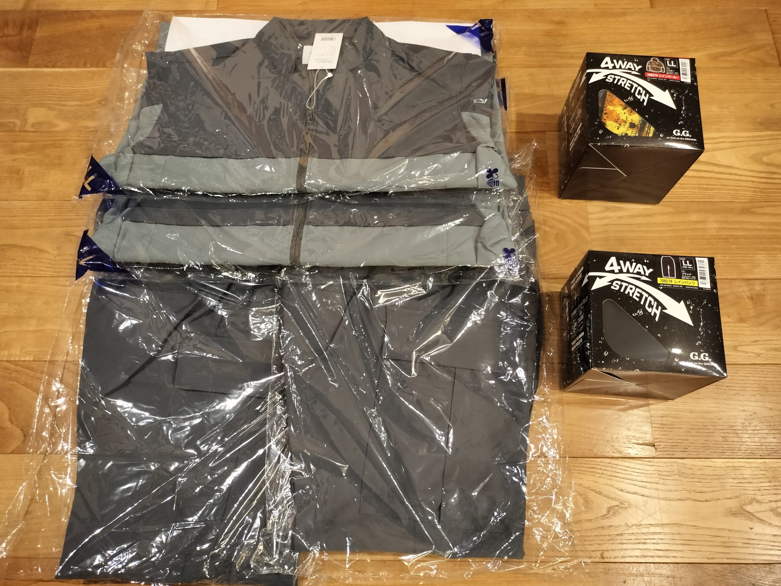 制服横の、ボックスはレインコートとレインパンツ。 以前から前回着ていたものが破れていたので、一緒に注文しました。